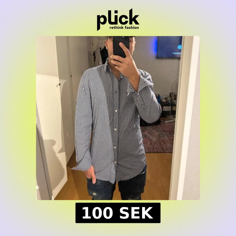 Snygg blårutig skjorta från H&M i slim fit-modell. Skjortan har klassisk krage, vita knappar och långa ärmar med manschett. Tillverkad i bomull och är lätt att stryka. Perfekt för dig som gillar stilrena och moderna plagg med lite edge.