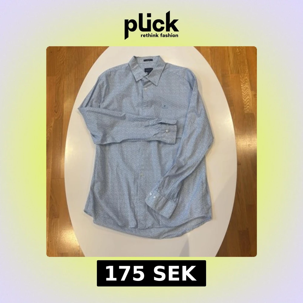 Snygg blåvit skjorta från Gant i storlek XL med diskret mönster och klassisk krage. Skjortan har knappar framtill och broderad Gant-logga på bröstet. Regular fit för en bekväm passform. Perfekt för dig som gillar stilrena detaljer.