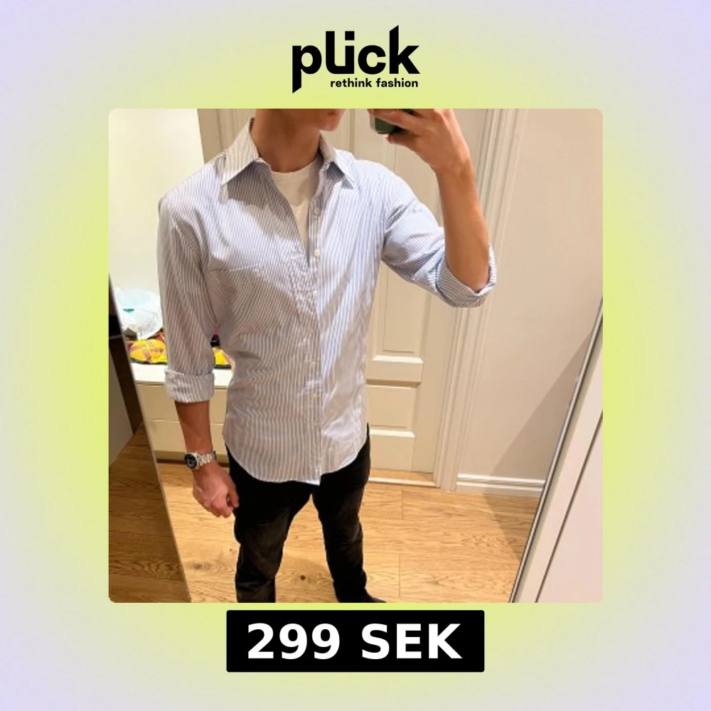 Säljer en klassisk blårandig skjorta från Etienne Aigner. Skjortan har lång ärm, knappar framtill och en bröstficka. Tillverkad i bomull och polyester, perfekt för en stilren look denna sommar. Skriv vid minsta fundering!🤗