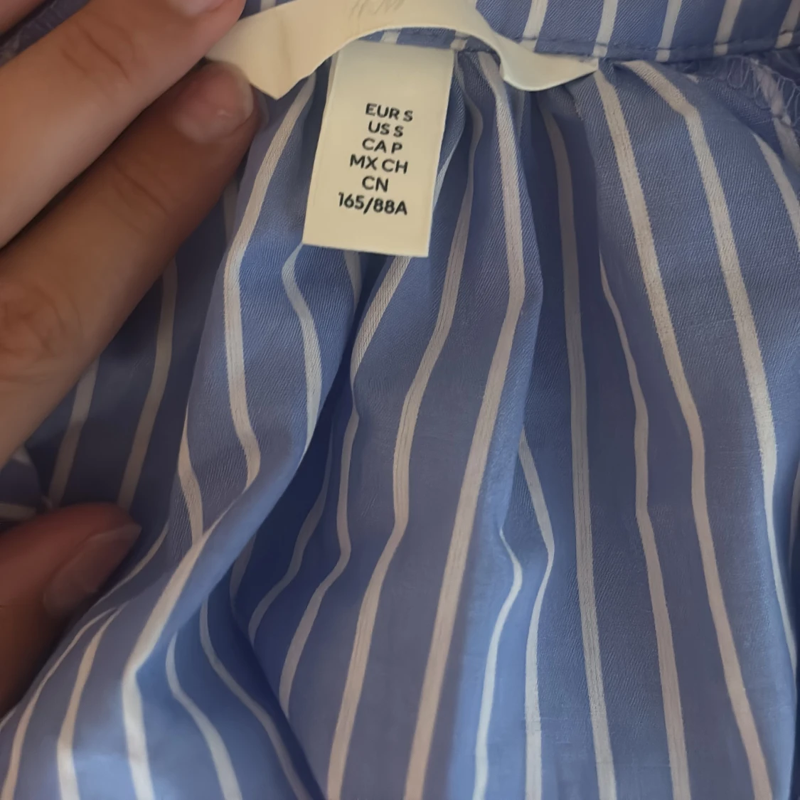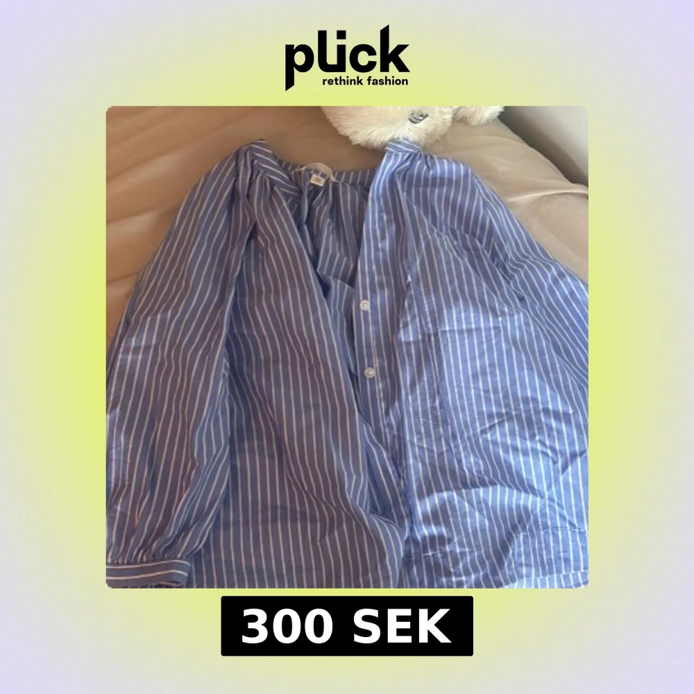 Snygg blå skjorta med vita ränder från H&M. Skjortan har klassisk krage, knäppning framtill och långa ärmar med manschett. Perfekt för en chill och stilren look. Tillverkad i mjuk bomull som känns skön mot huden.
