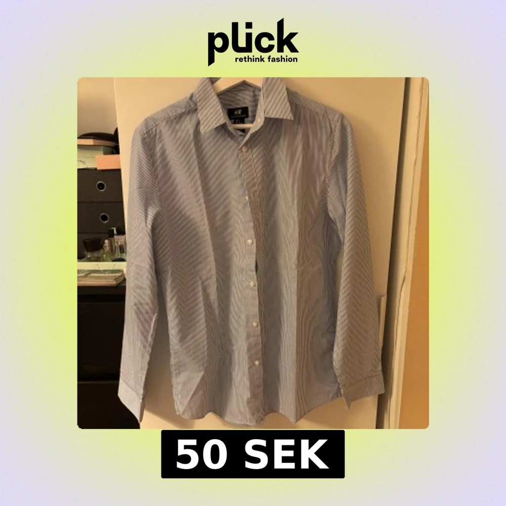 Klassisk blåvit randig skjorta från H&M i slim fit-modell. Skjortan har långa ärmar, knappar framtill och är tillverkad i en mjuk blandning av polyester och bomull. Perfekt för en stilren och fräsch look.
