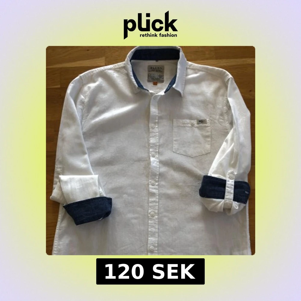 Vit långärmad skjorta från Blend med kontrastblå insida på krage och ärmslut. Klassisk knappslå och bröstficka. Perfekt för en stilren look med en twist.
