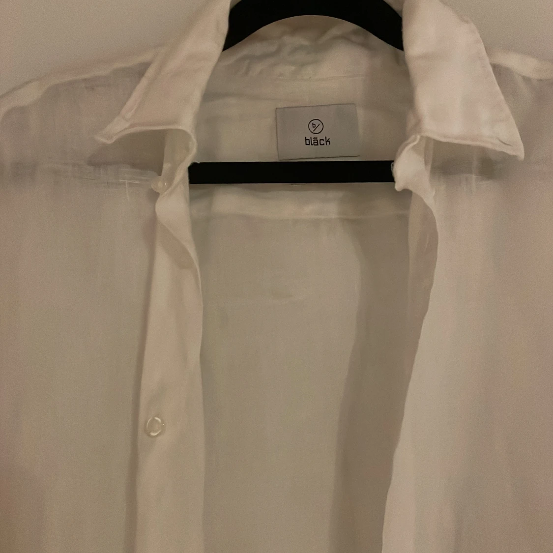 Stilren vit skjorta från Black i tunt, lyxigt silke. Klassisk krage, långärmad och med knappar framtill. Perfekt för dig som gillar en clean och tidlös look. Skjortan har en lätt glansig finish och känns riktigt skön mot huden.