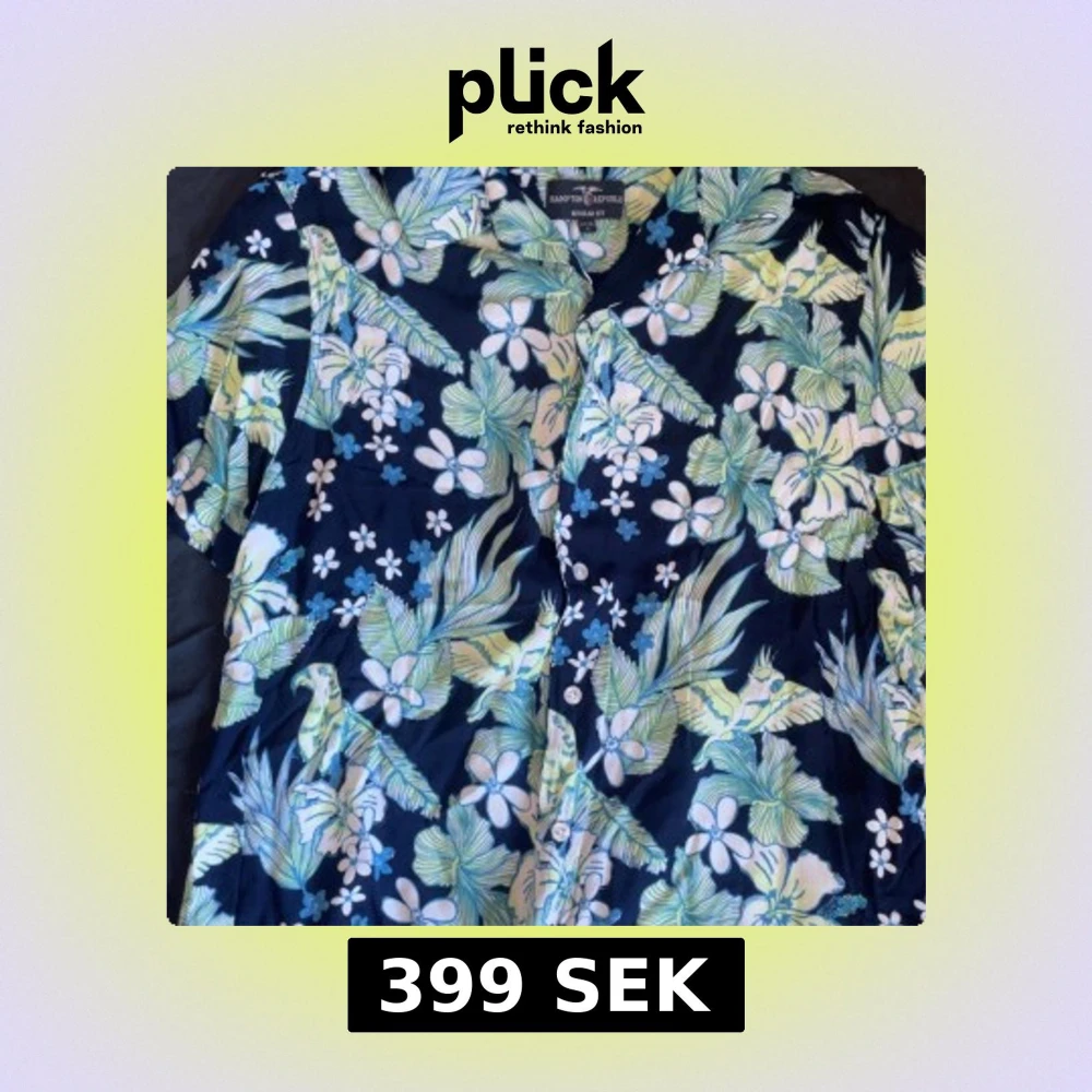 Säljer en färgglad kortärmad skjorta från Raintree Republic med tropiskt blommönster i blått, grönt och vitt. Perfekt för sommarens äventyr! 🌺