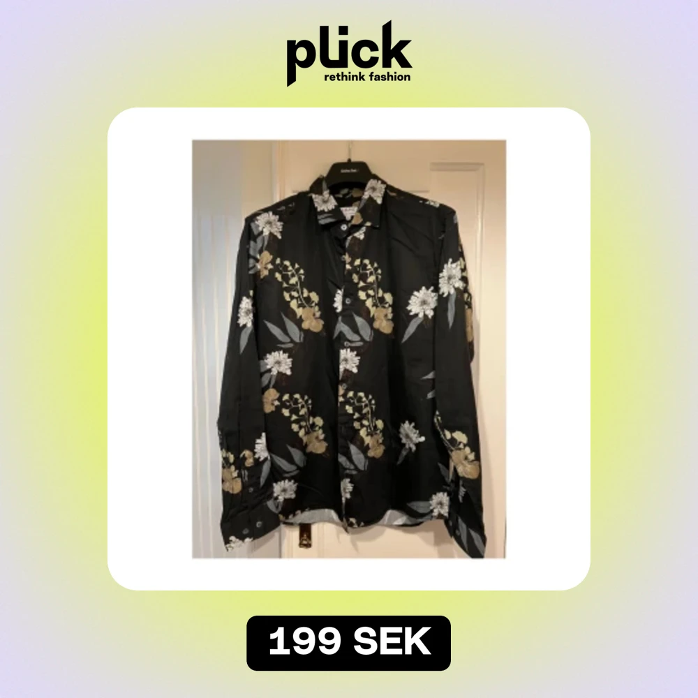 Skjorta herr, Ljung, strl XL, svart, blommig, lite använd