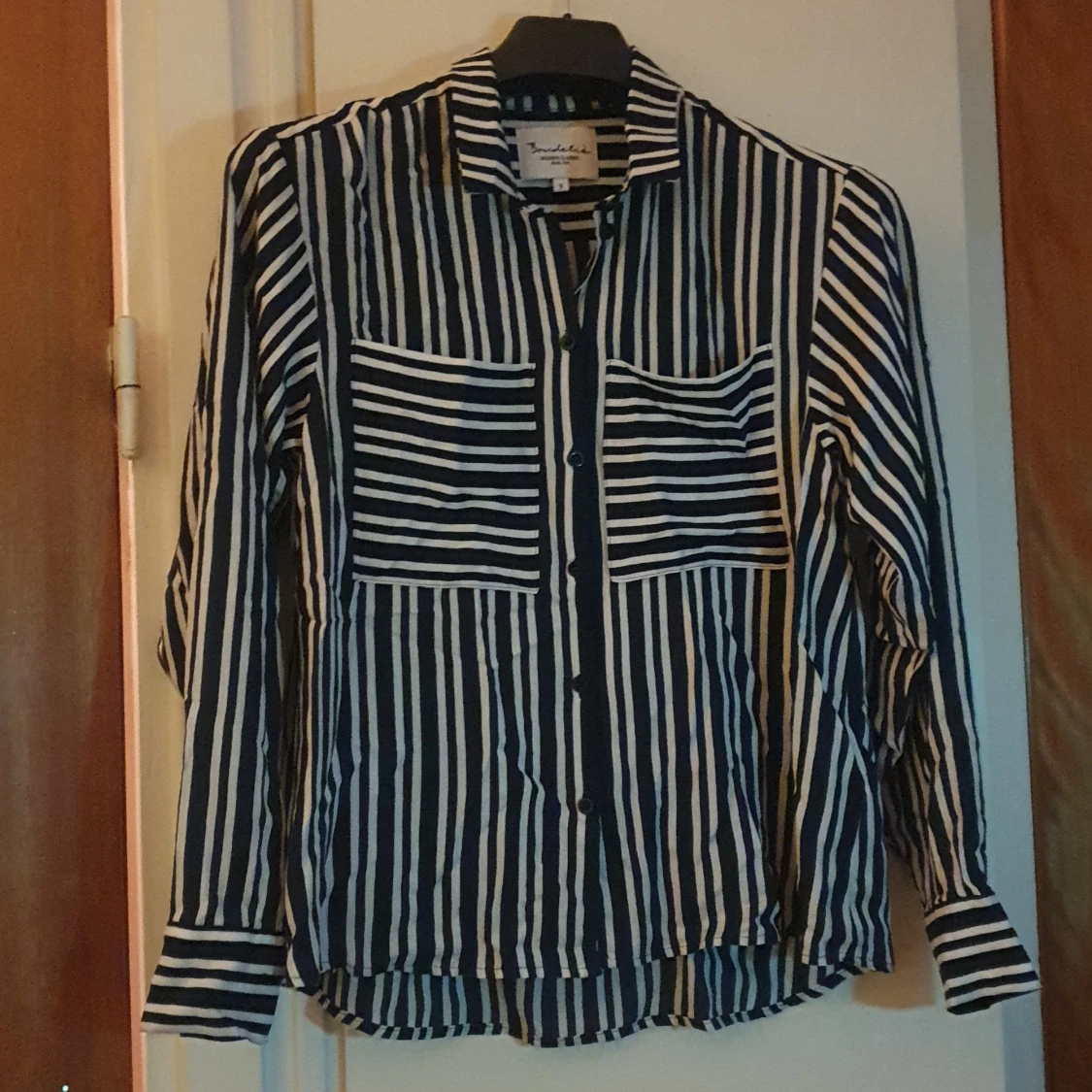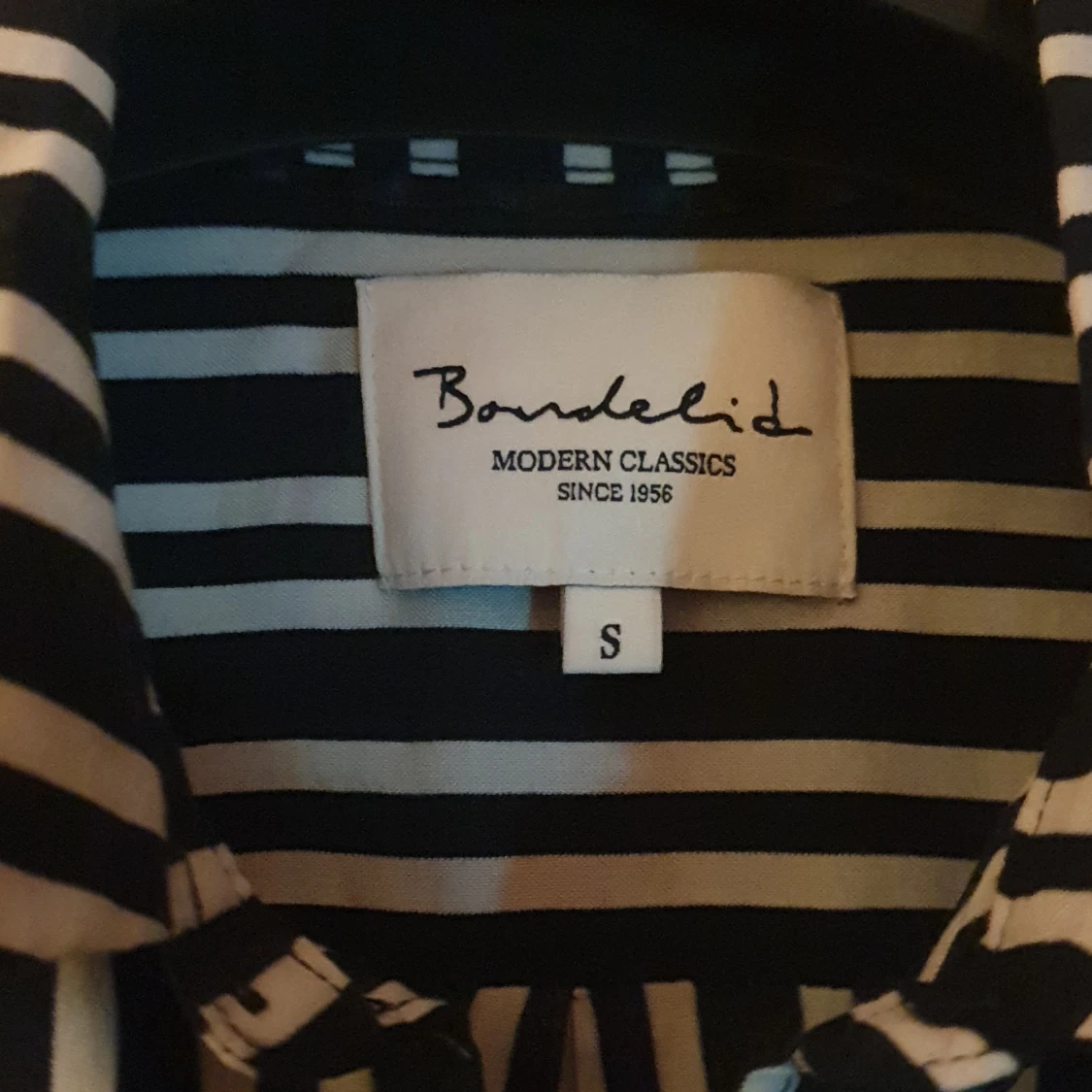 Snygg skjorta från Bondelid i svart och vitt med vertikala och horisontella ränder. Klassisk krage, långa ärmar och knäppning framtill. Skjortan har två bröstfickor och är tillverkad i ett mjukt bomullstyg. Perfekt för en stilren look.
