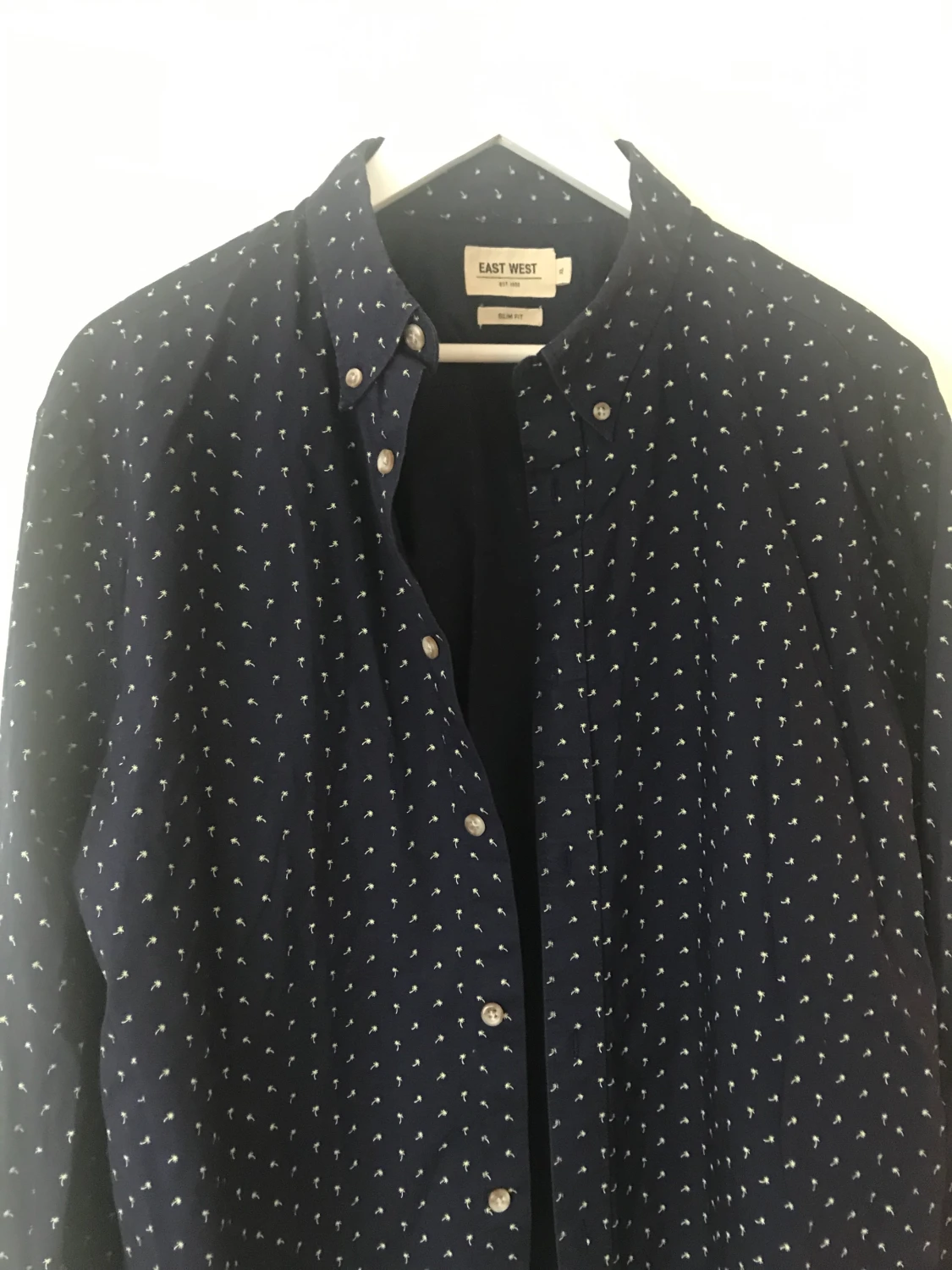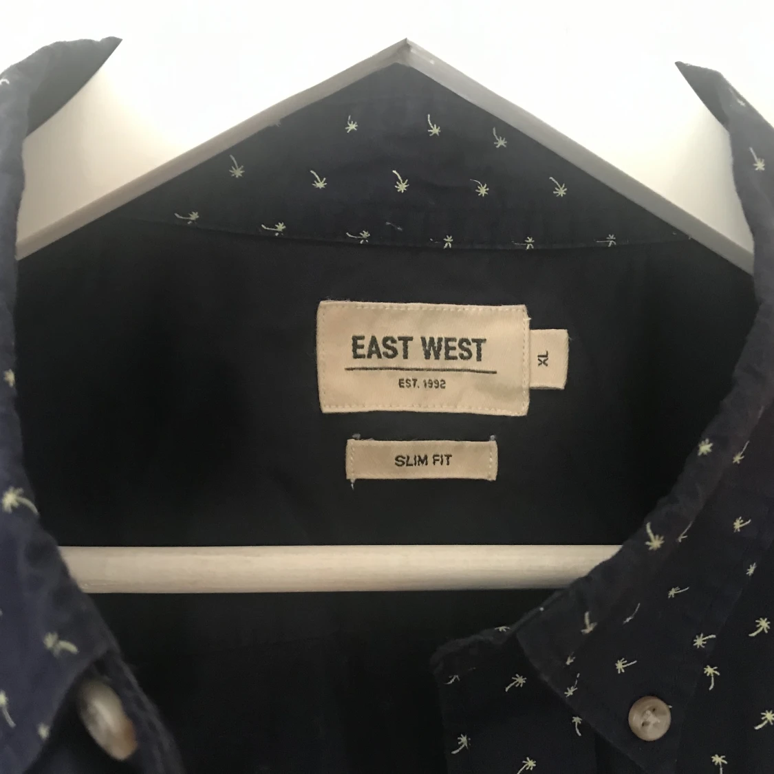 Slimfit skjorta från Brothers och marinblå skjorta full av små palmer i en fin gul färg. Materialet är tunt snyggt tyg. Inga defekter eller dylikt. Skriv gärna om ni har frågor. Köpa fler lika med bättre priser ! Köparen står för frakten