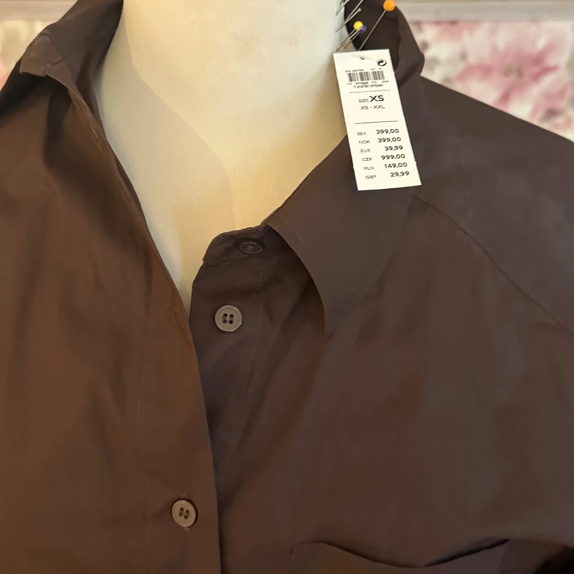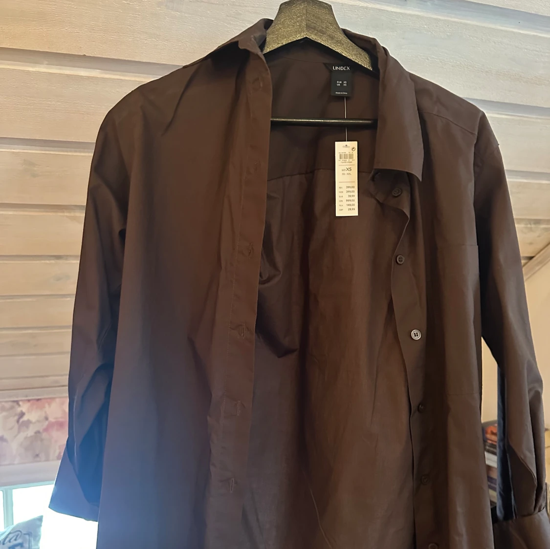 Helt ny och oanvänd brun skjorta från Kappahl, originalpris 399 :) för fler bilder eller frågor kontakta mig :) det står XS men skulle passa oversized på dom med s/M i storlek.