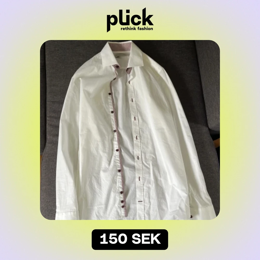 Vit bugattiskjorta med röda knappar och detaljer. Sparsamt använd. Kostade runt 1000 ny. Storlek 38 passar främst small men kan passa medium.