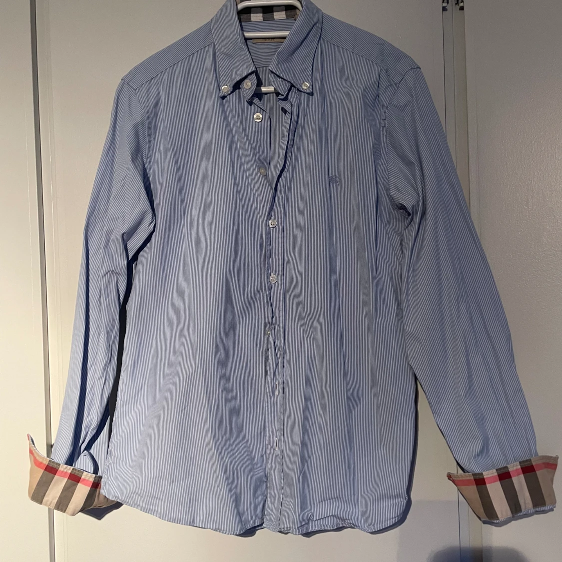 Säljer min grymt snygga Burberryskjorta då den dessvärre inte kommer till användning. Ljusblårandigt mönster som är ett måste i sommarens garderob! Tveka inte på att höra av er för fler bilder eller andra frågor. Allt gott!