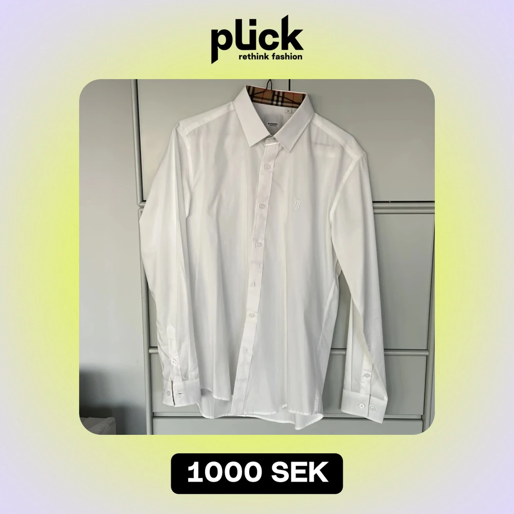 En vit butberry skjorta i nyskick, inga fläckar eller liknande. Storlek M men passar snarare S. Inget og, köpt här på plick