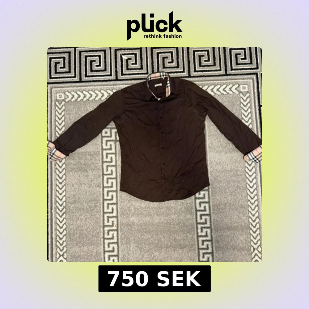 Säljer en brun skjorta från Burberry med klassiska rutiga detaljer på krage och ärmslut. Skjortan har lång ärm, knappar framtill och är tillverkad i bomull. Perfekt för dig som gillar stilrena och tidlösa plagg med en twist.