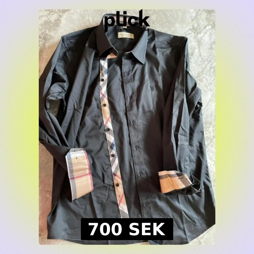 Svart skjorta från Burberry med klassiskt rutigt mönster på knappslå och insidan av manschetterna. Skjortan har lång ärm, knappar framtill och en snygg krage. Materialet är mjuk bomull och loggan är broderad på bröstet.