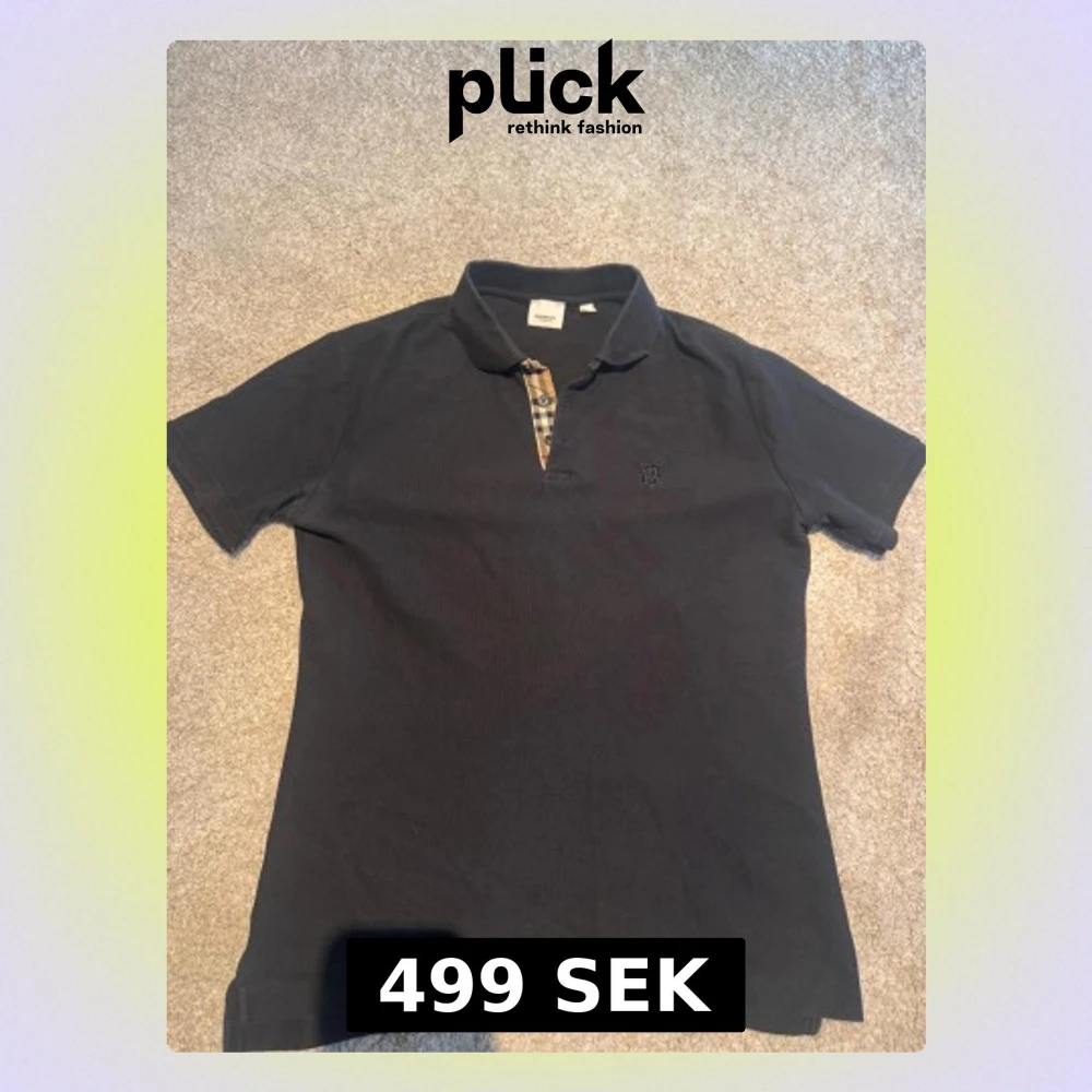 Svart skjorta från Burberry i storlek L med klassisk krage och korta ärmar sitter bra på m även . Snygg rutig knappslå i beige, svart och rött som ger en ikonisk touch. Diskret broderad logga på bröstet. Skön bomullskvalitet som känns chill och stilren.