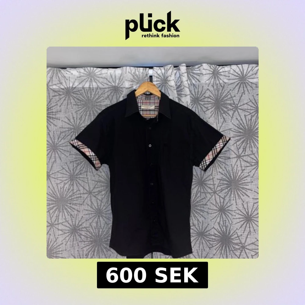 Svart kortärmad skjorta från Burberry med klassiskt rutigt mönster på insidan av kragen och ärmsluten. Skjortan har knappar framtill och en stilren, rak passform. Perfekt för dig som gillar en clean look med en touch av lyx.