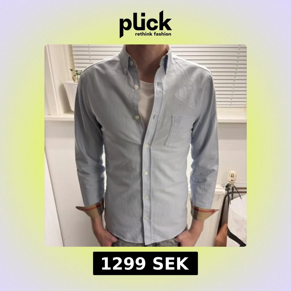 En snygg Burberry skjorta i en ljusblå färg i bra skick. Storlek S.