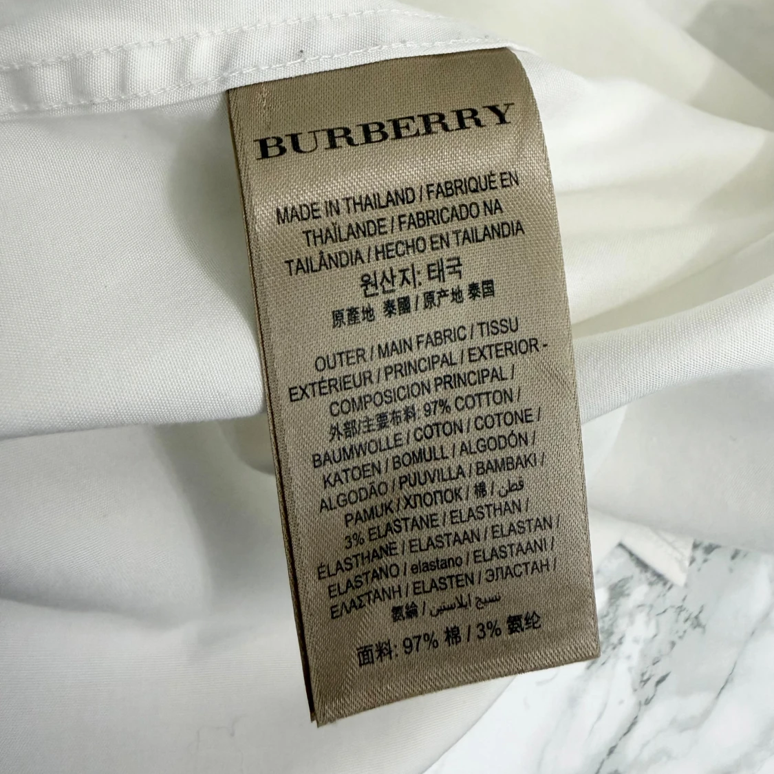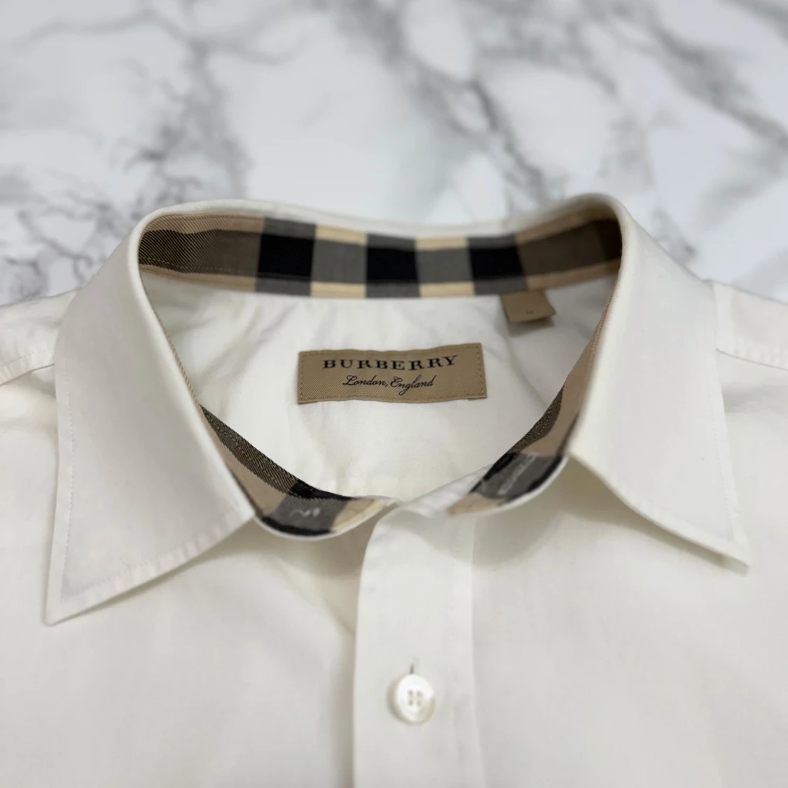 Vit Burberry skjorta i storlek M i mycket bra skick. Skjortan är självklart äkta. Är du osäker på äkthet hänvisar jag gärna till bra källor/guider. Tveka inte på att höra av dig för fler frågor eller vid minsta fundering! Skick: 9/10