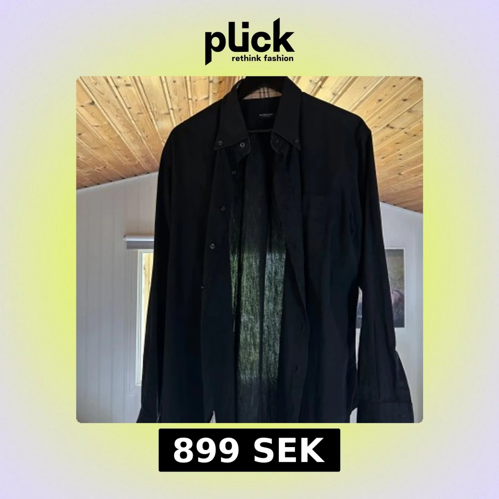 Svart skjorta från Burberry med klassisk krage och knappar framtill. Långa ärmar med den ikoniska Burberry-rutiga insidan på manschetten. Tillverkad i lätt och luftig bomull, perfekt för dig som gillar stilrena plagg. Köpt på vestaire