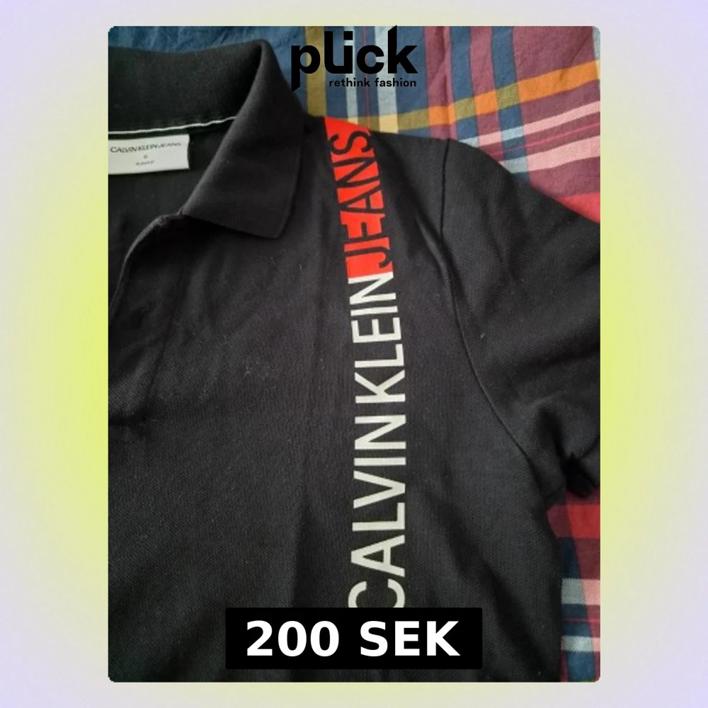Svart pikétröja från Calvin Klein Jeans med vit och röd logga längs ena sidan framtill. Slim fit-modell med klassisk krage och kort ärm. Perfekt för en stilren och modern look.