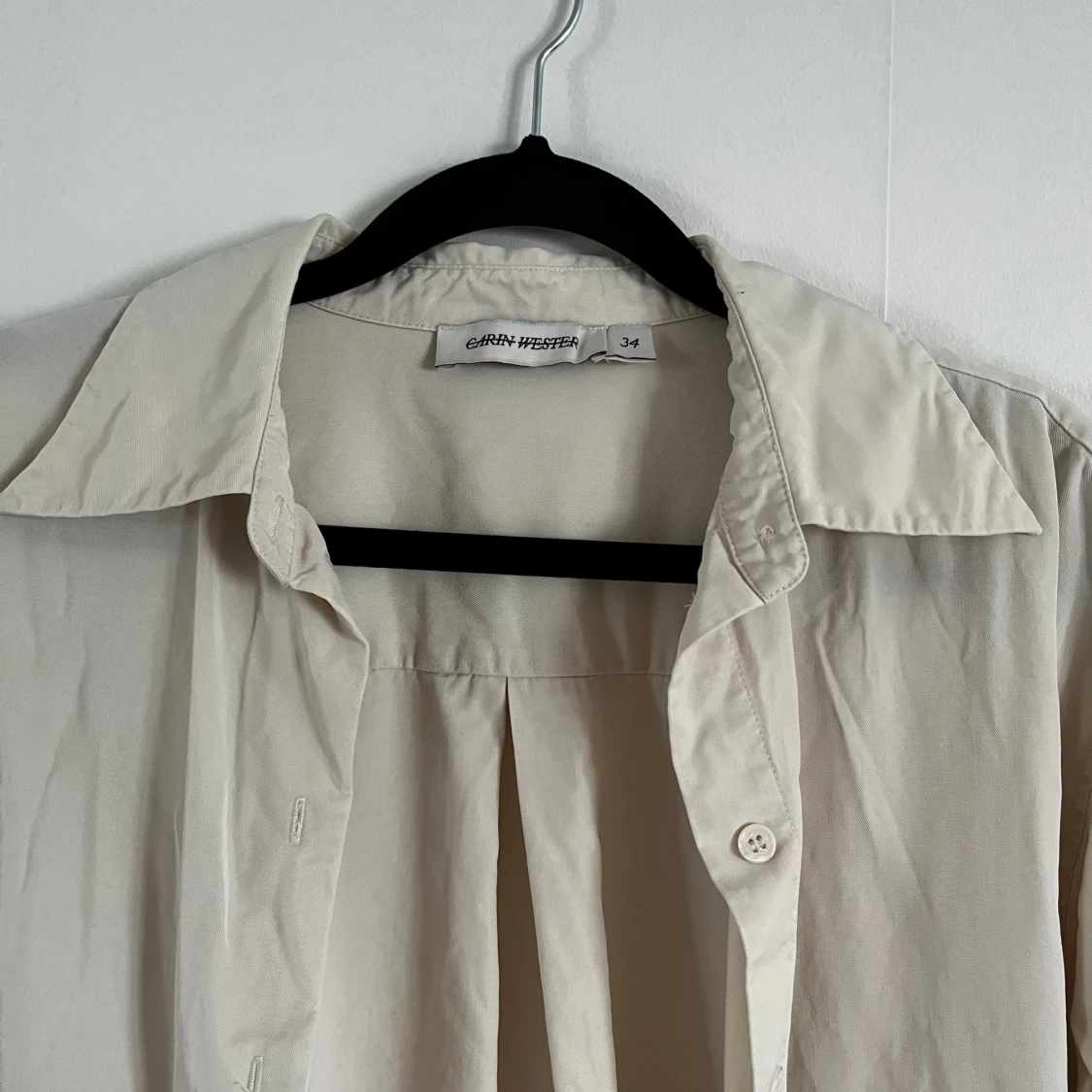 Oversized skjorta från Carin Wester i storlek 34 men passar även större! Skönt tyg i färgen ljusbeige/offwhite. Fint skick! 👉Rabatt om ni gör en bundle, så kika in min profil om ni hittar något mer!☀️