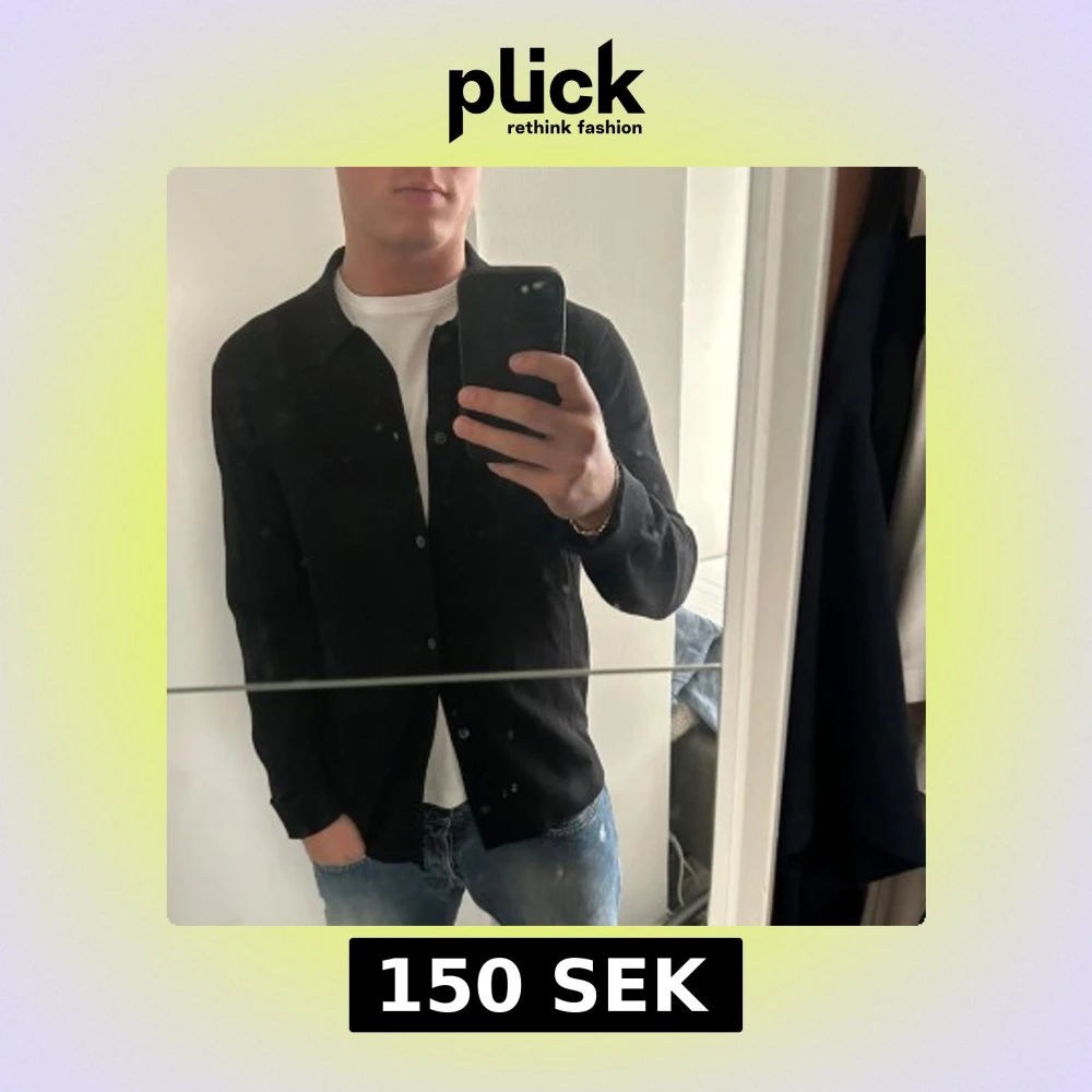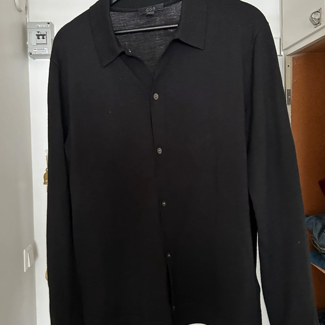 Stilren stickad svart skjorta från COS med klassisk krage och knäppning framtill. Skjortan har lång ärm och är tillverkad i ett mjukt material som passar perfekt till jeans eller chinos.