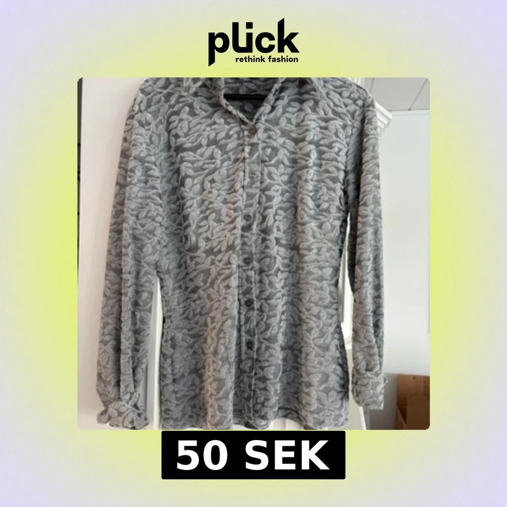 Säljer en grå skjorta med ett unikt, upphöjt mönster och knappar framtill. Skjortan har klassisk krage och långa ärmar, perfekt för dig som vill ha något annorlunda men stilrent. Passar till många olika tillfällen!
