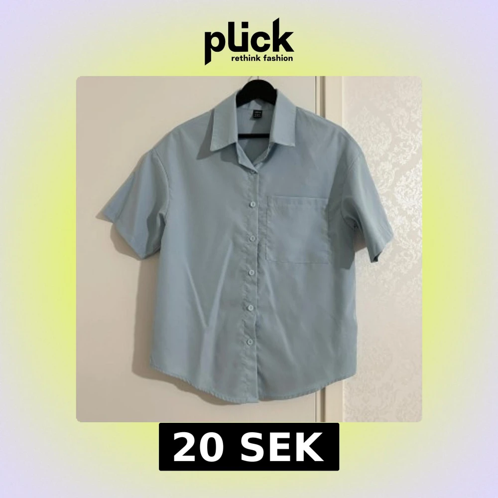Ljusblå skjorta från SHEIN med korta ärmar och klassisk krage. Skjortan har knäppning framtill och en bröstficka. Perfekt för en stilren och enkel look.