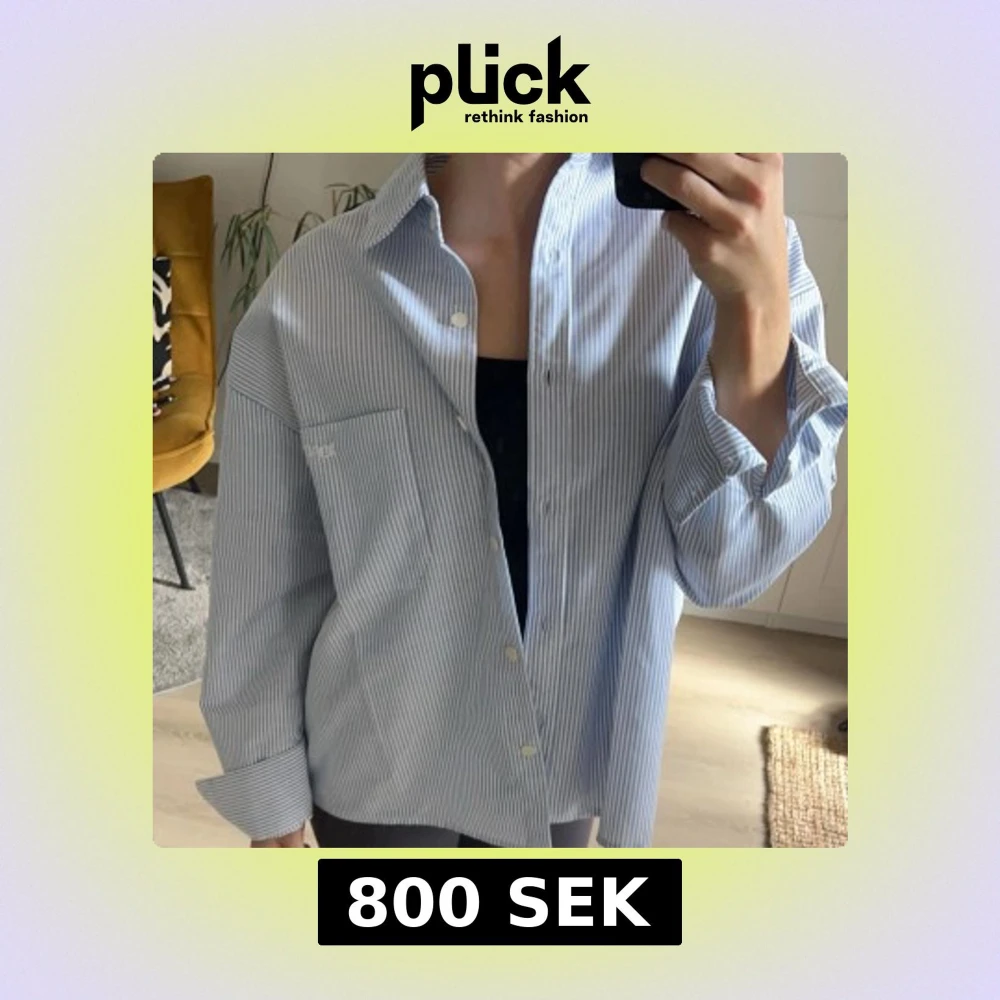 Säljer en oversized blåvit randig skjorta från Djerf Avenue. Skjortan har klassisk krage, bröstficka med broderad logga och knäppning framtill. Perfekt för en avslappnad och stilren look.
