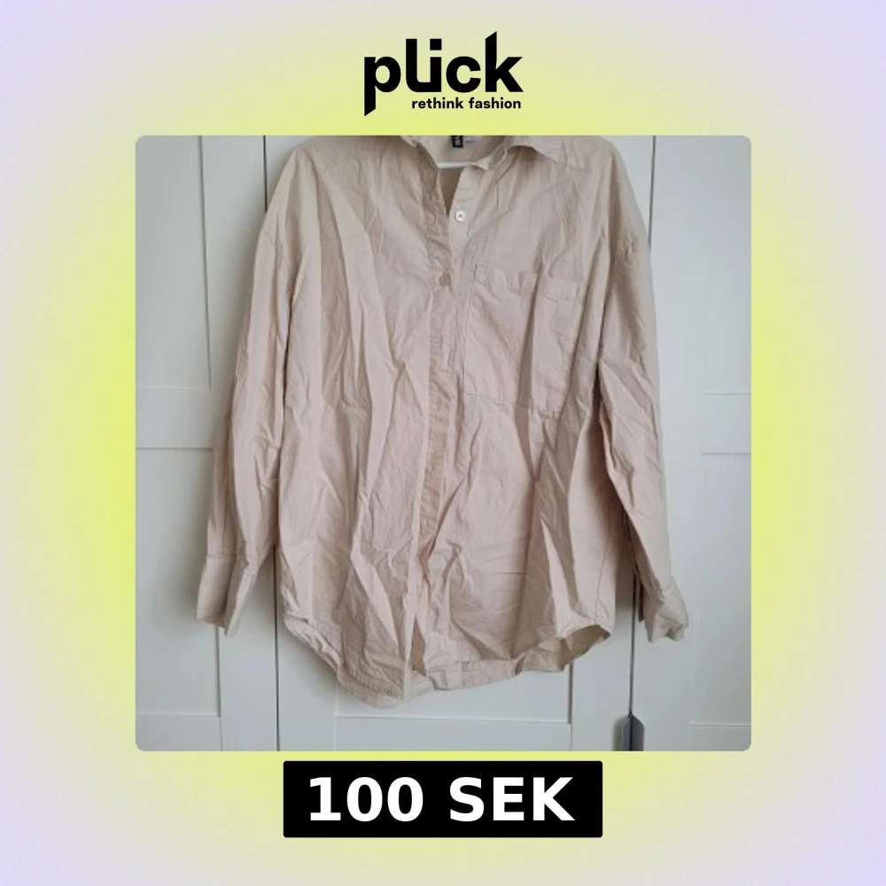 Säljer en stilren beige skjorta från H&M Divided i storlek XS. Skjortan har långa ärmar och en klassisk krage med knappar framtill. Perfekt för en avslappnad men ändå snygg look.