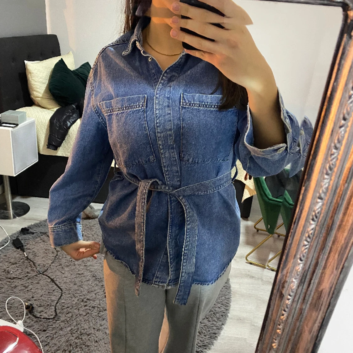 Riktigt snygg jeans skjorta med skärp från GinaTricot, köpt för något år sedan men endast andvänts 1 gång.