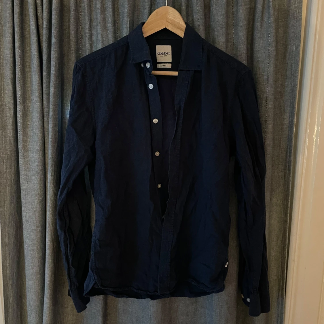Snygg mörkblå skjorta från Dobber med klassisk krage och knäppning framtill. Skjortan har lång ärm och är tillverkad i ett mjukt material som känns skönt mot huden. Perfekt för dig som gillar stilrena och enkla plagg.