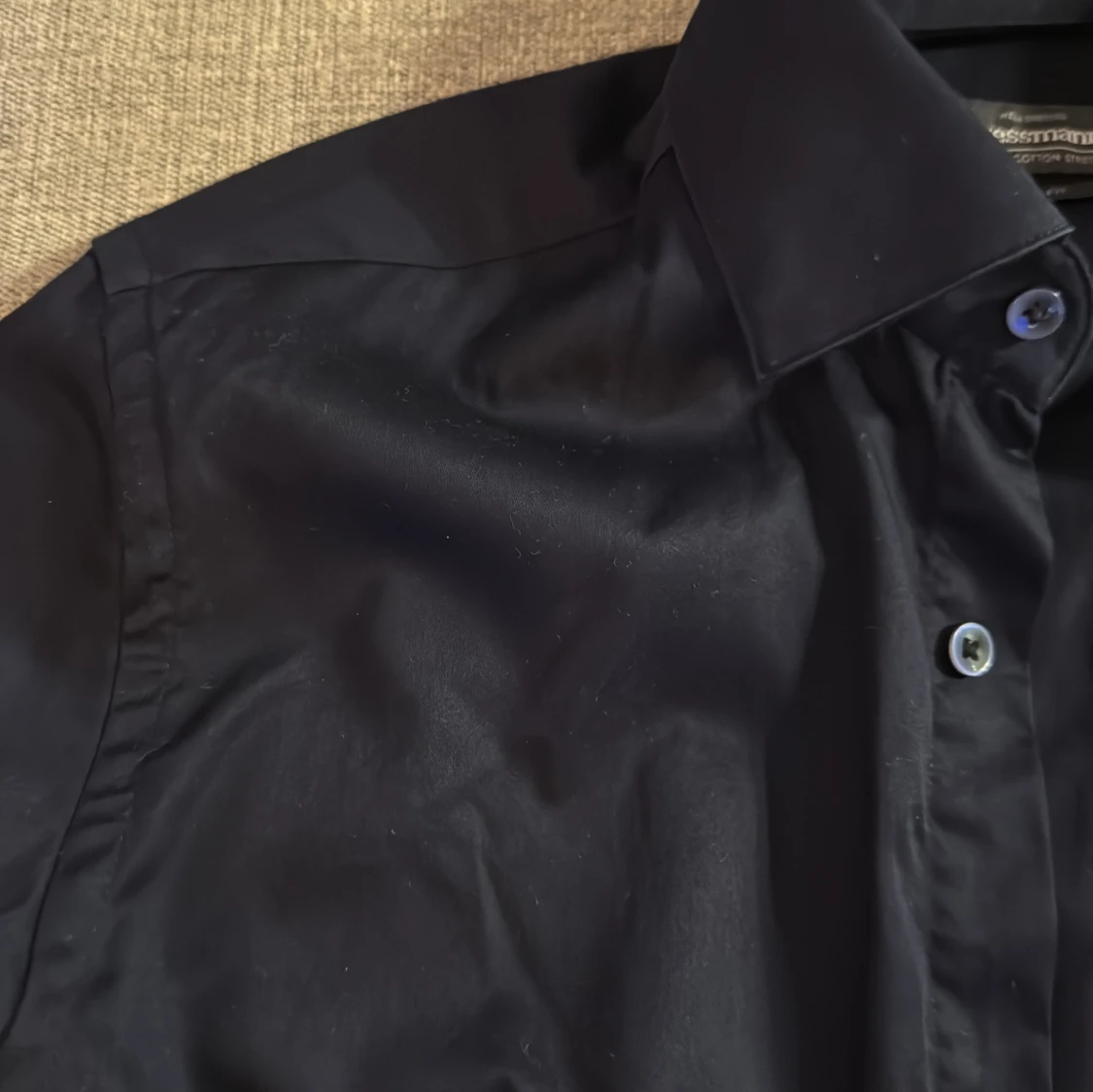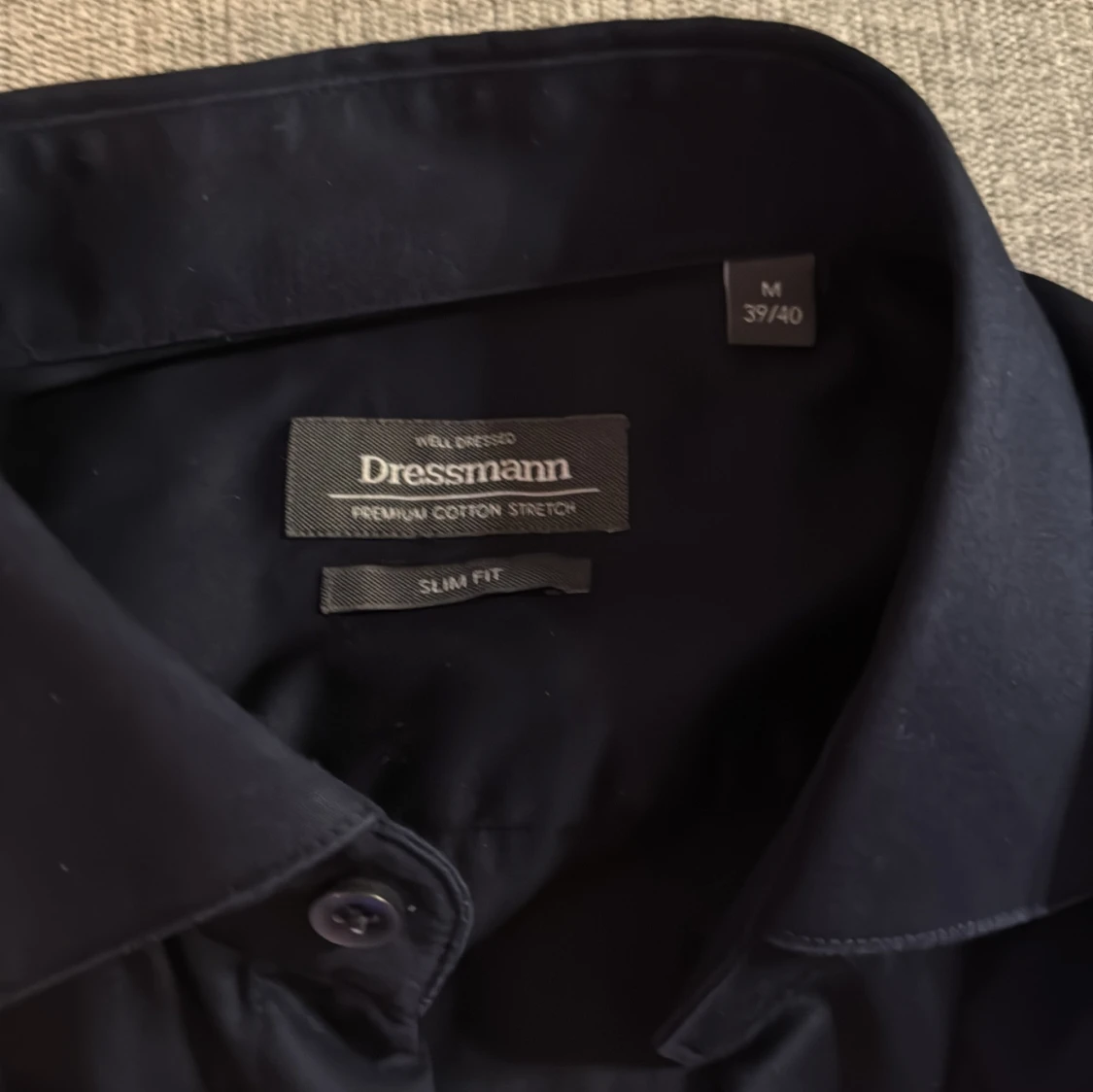 Snygg svart skjorta från Dressmann i slim fit. Tillverkad i premium bomullsstretch för extra komfort. Perfekt för en stilren look med knappar framtill och klassisk krage.