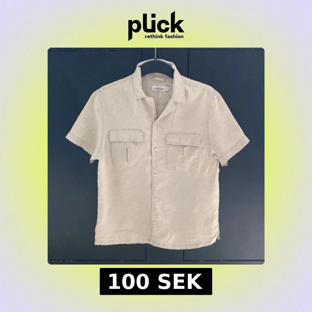 Snygg beige skjorta i 100% linne från Dressmann. Skjortan har korta ärmar, klassisk krage, två bröstfickor med lock och knäppning framtill. Perfekt för varma dagar och ger en clean och avslappnad look.