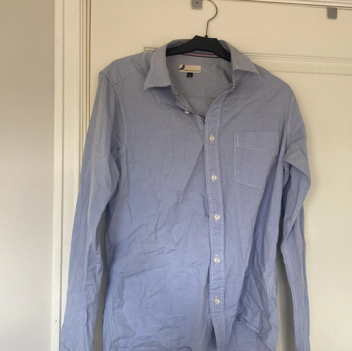 Säljer en klassisk ljusblå skjorta från Dressmann i storlek S. Skjortan har lång ärm, bröstficka och vita knappar framtill. Perfekt för dig som gillar en stilren och enkel look. Materialet är mjukt och känns skönt mot huden.