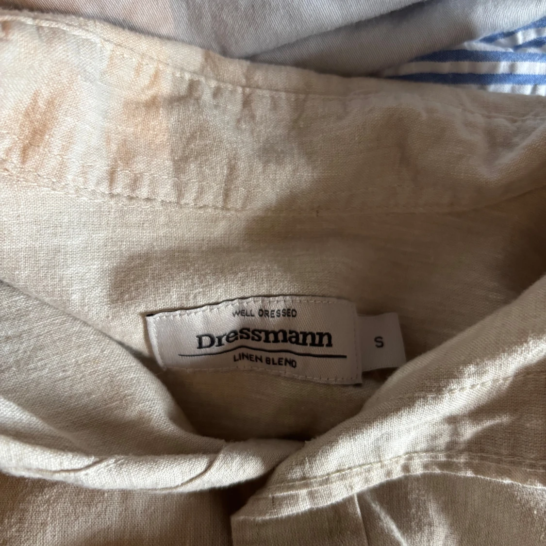 Snygg beige skjorta från Dressmann i linnemix. Klassisk krage, bröstficka och knäppning framtill. Perfekt för dig som gillar en avslappnad men stilren look. Långärmad och i luftig, skön kvalitet.