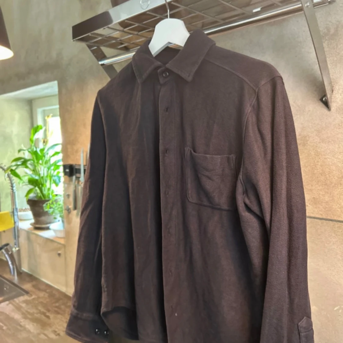 Säljer en mörkblå overshirt från East West i grov bomull. Skjortan har klassisk krage, bröstficka och knäppning framtill. Perfekt att slänga över en t-shirt för en chill look. Långärmad och med enkel, stilren design.