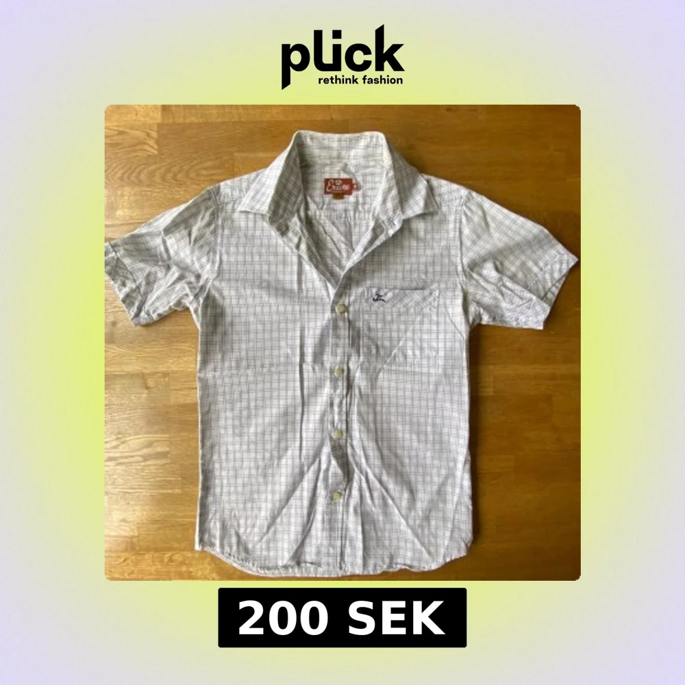 Vit skjorta från Encore i storlek M med rutmönster, klassisk krage och korta ärmar. Slim fit-modell med knappstängning framtill och bröstficka med broderad logga. Perfekt för dig som gillar stilrena och fräscha skjortor.