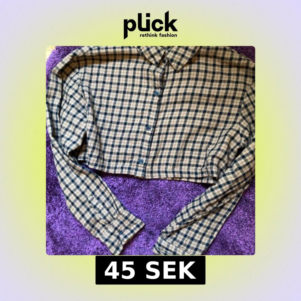 Snygg croppad skjorta från H&M i brunt och svart rutigt mönster. Skjortan har klassisk krage, långa ärmar och knäppning framtill. Sitter även croppad på XS.