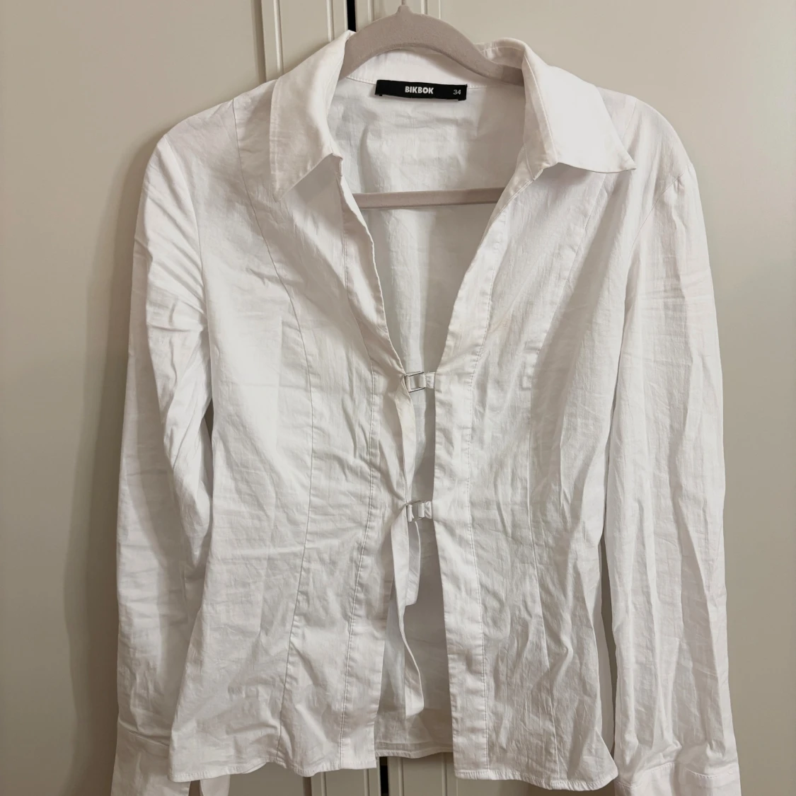 Säljer en supersnygg skjorta i storlek 34 från BikBok med anpassningsbara spännen och slits i ärmarna. Säljer då den inte kommer till användning. Nypris 549 kr