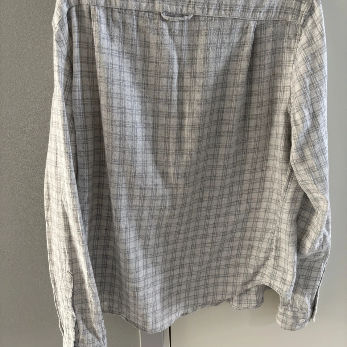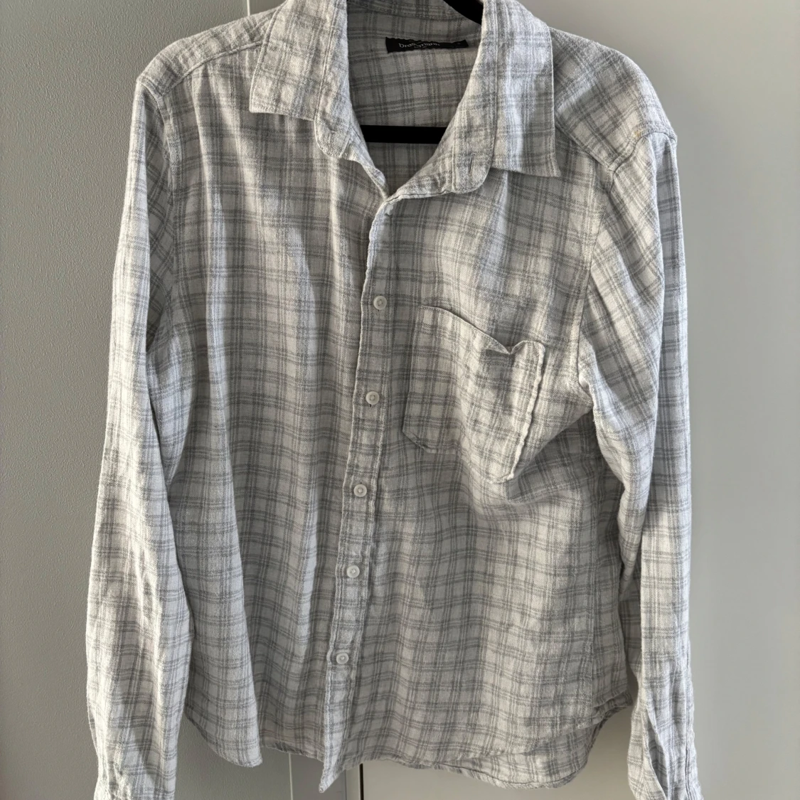 Snygg gråvit rutig skjorta med klassisk krage och bröstficka. Skjortan har långa ärmar och stängs med knappar framtill. Perfekt för en avslappnad och stilren look. Tillverkad i mjukt bomullstyg som känns skönt mot huden.
