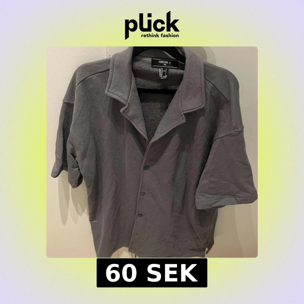 Säljer en grå skjorta från Forever 21 med korta ärmar och klassisk krage. Skjortan har knappar framtill och är tillverkad i mjuk bomull som känns skön mot huden. Perfekt för dig som gillar enkel och clean stil.