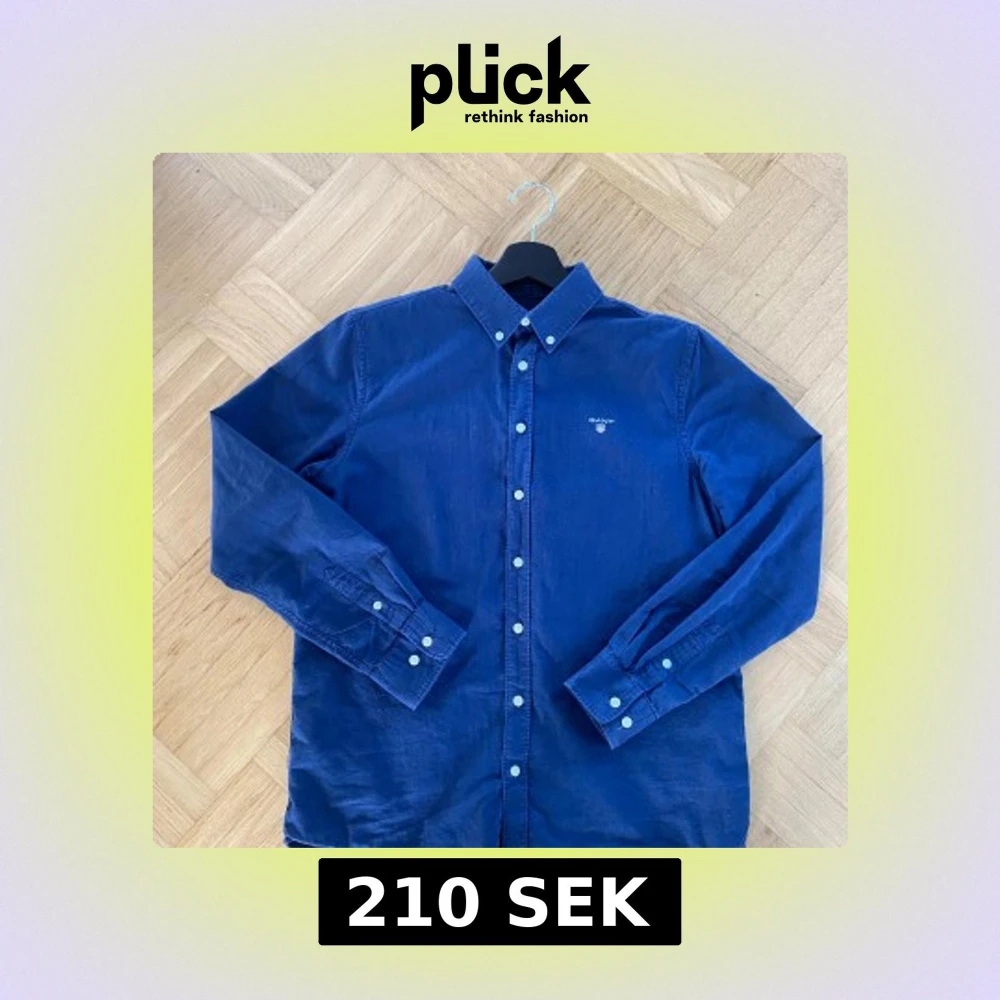 Snygg marinblå skjorta från Gant i mjuk bomull. Klassisk button-down krage, vita knappar och broderad logga på bröstet. Långärmad modell med normal passform, perfekt till jeans eller chinos.