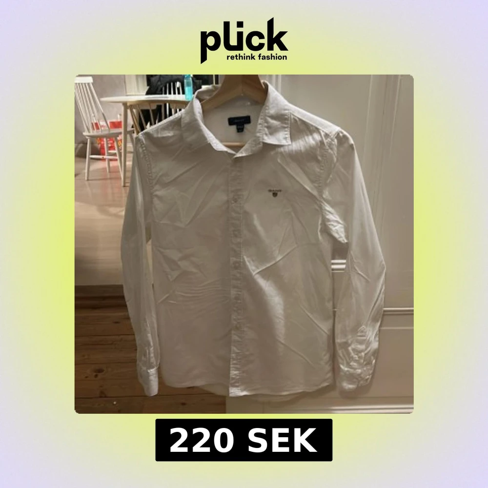 Säljer en klassisk vit skjorta från GANT i storlek 158/164 cm. Skjortan har långa ärmar och knappar framtill. Pris kan diskuteras