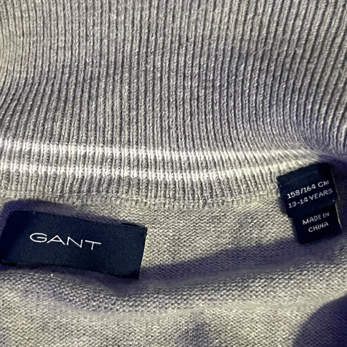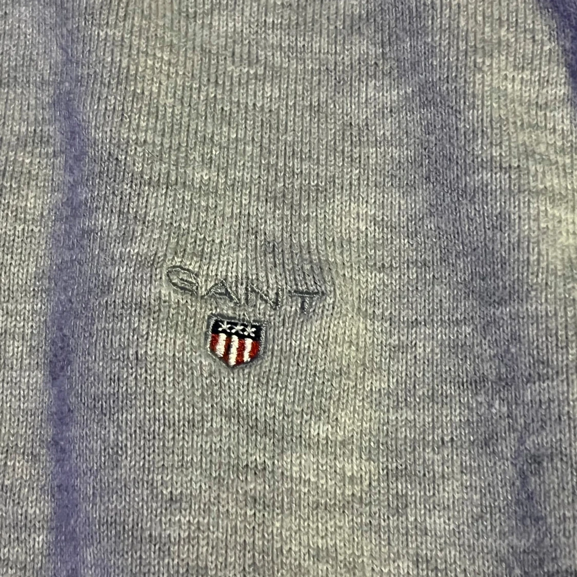 Säljer en stilren grå tröja från GANT med halv dragkedja och broderad logotyp på bröstet. Perfekt för en avslappnad och snygg look. Tröjan har långa ärmar och är tillverkad i ett mjukt material. Storlek 158/164cm (13-14 år)