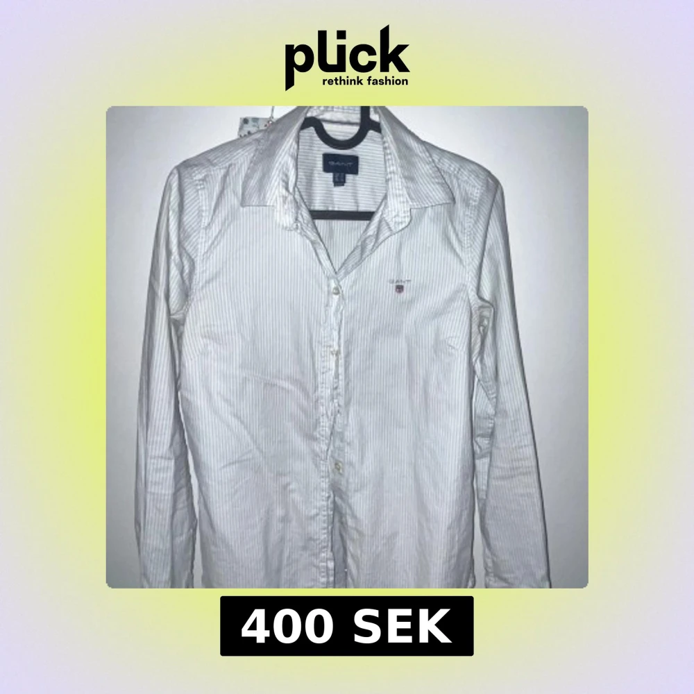 Snygg vit skjorta från Gant med tunna ljusblå ränder och klassisk krage. Skjortan har lång ärm, knappar framtill och en liten broderad logga på bröstet. Perfekt för dig som gillar stilrena och tidlösa plagg. Storlekar 34