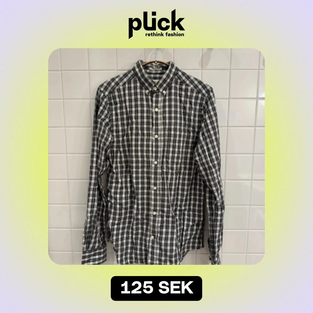 Superfin rutig skjorta från GANT i stilrena gråbeigea toner. Storlek S och i mycket fint skick. Ett klassiskt plagg som passar vid alla tillfällen!