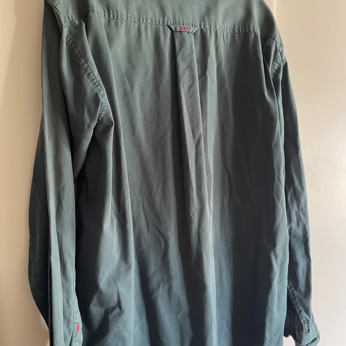 Snygg grön skjorta från GANT i 100% bomull med klassisk button-down krage och bröstficka. Skjortan har ljusa knappar och diskreta röda detaljer vid fickan och ryggen. Perfekt för dig som gillar stilrena och tidlösa plagg. Välanvänd skön. Kamerans röda sökare orsakar det lite bleka uttrycket i mitten men skjortan är jämnt grön.