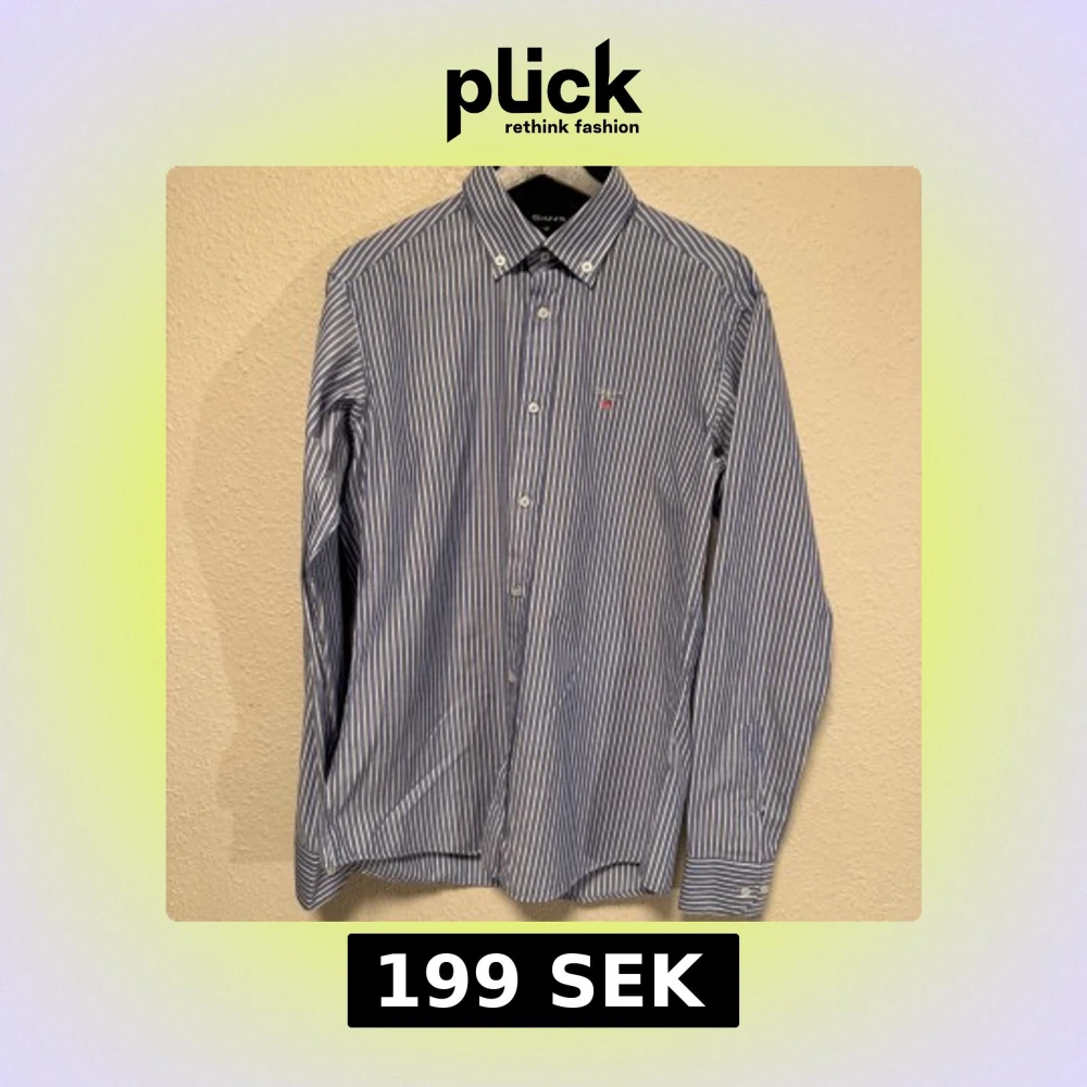 Klassisk blå och vit randig skjorta från Gant med button down-krage och broderad logga på bröstet. Skjortan har långa ärmar, knappar framtill och är tillverkad i mjuk bomull. Perfekt för en clean och stilren look.