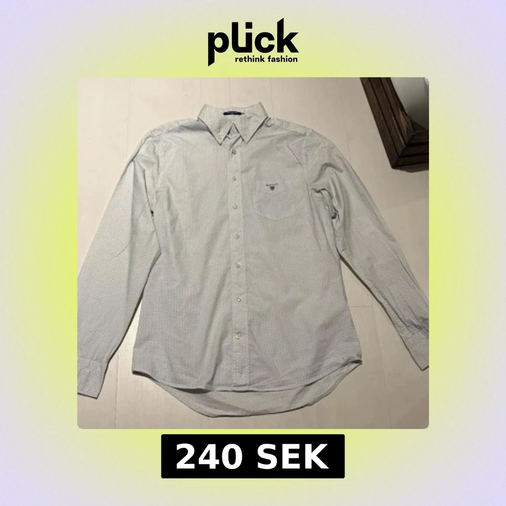 Snygg vit skjorta från GANT med små svarta och blåa prickar och klassisk krage. Skjortan har en bröstficka med broderad logotyp och knappar framtill. Perfekt för en stilren look. Storleken är M. Pris kan diskuteras vid snabb affär!