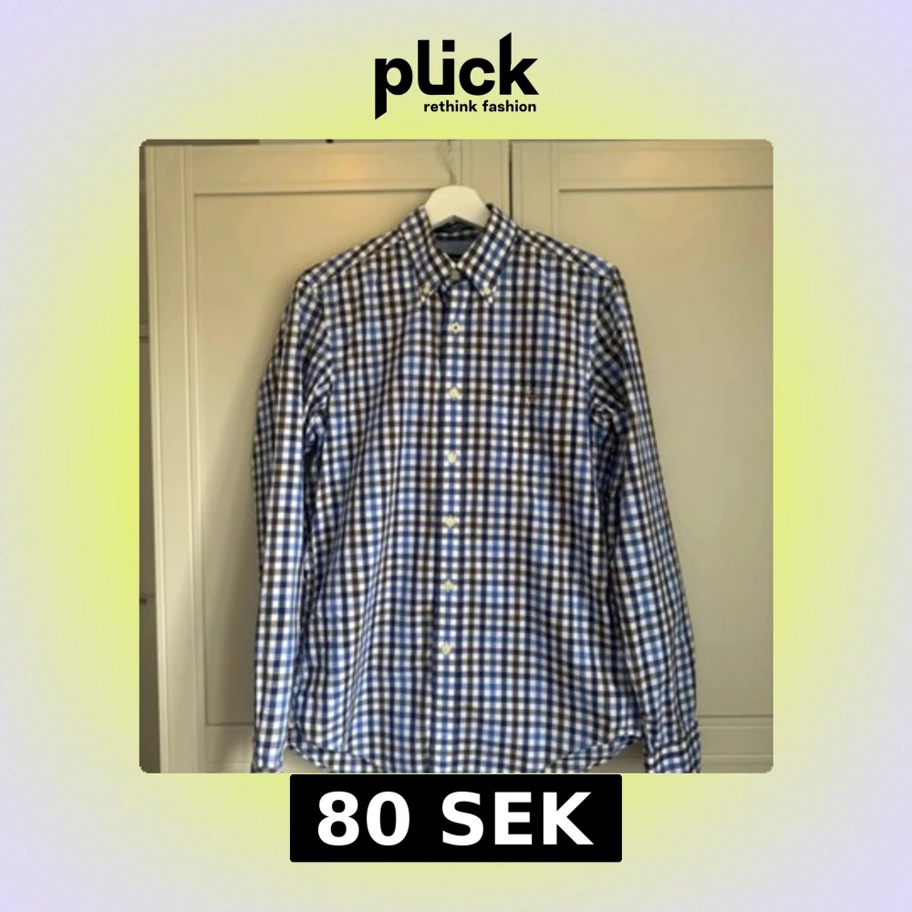 Säljer en snygg blårutig skjorta från GANT i bomull. Skjortan har en klassisk krage och knappar framtill. Perfekt för en stilren look. 💙 storlek S